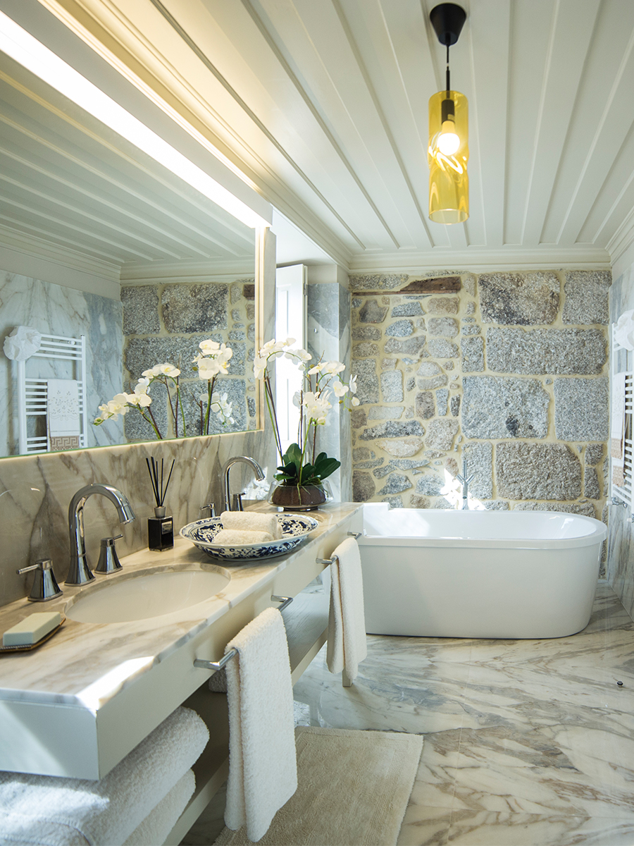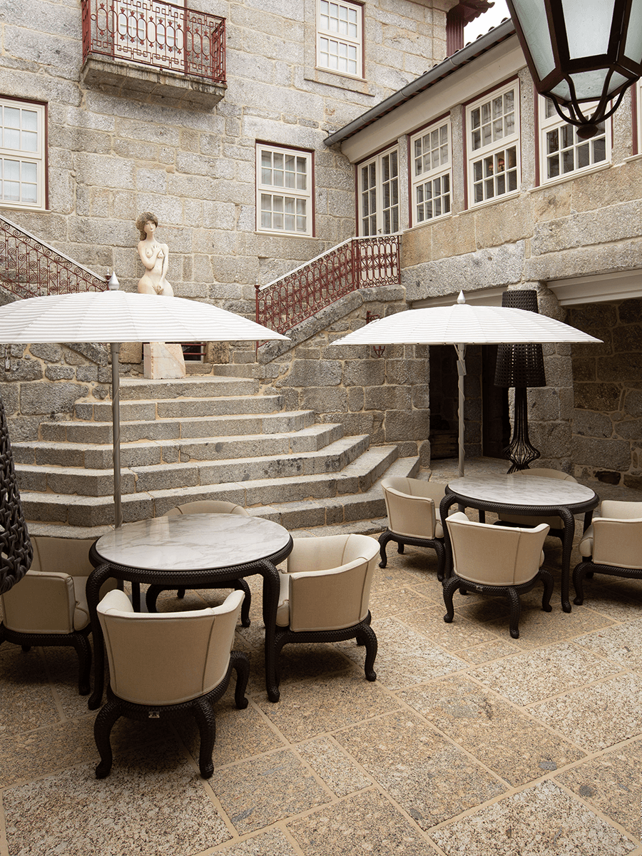 Distributed between the three floors, the 12 suites, all with en-suite bathrooms, are elegant and comfortable. On the first floor, the luxurious furnishings and accessories are a pleasant contrast to the strong character of the stone walls. On the second floor, both formal dining and living rooms remind us of Solar da Luz's palatial quality.